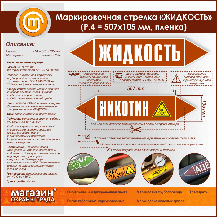 Маркировочная стрелка «ЖИДКОСТЬ»(P.4 = 507х105 мм, самоклеящаяся плёнка) в Кашире купить