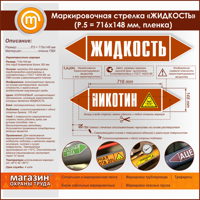 Маркировочная стрелка «ЖИДКОСТЬ» (P.5 = 716х148 мм, самоклеящаяся плёнка) в Кашире купить