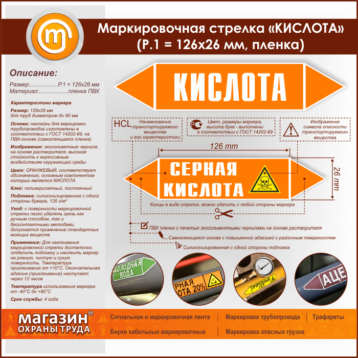 Маркировочная стрелка «КИСЛОТА» (Р.1 = 126х26 мм, самоклеящаяся плёнка) в Кашире купить