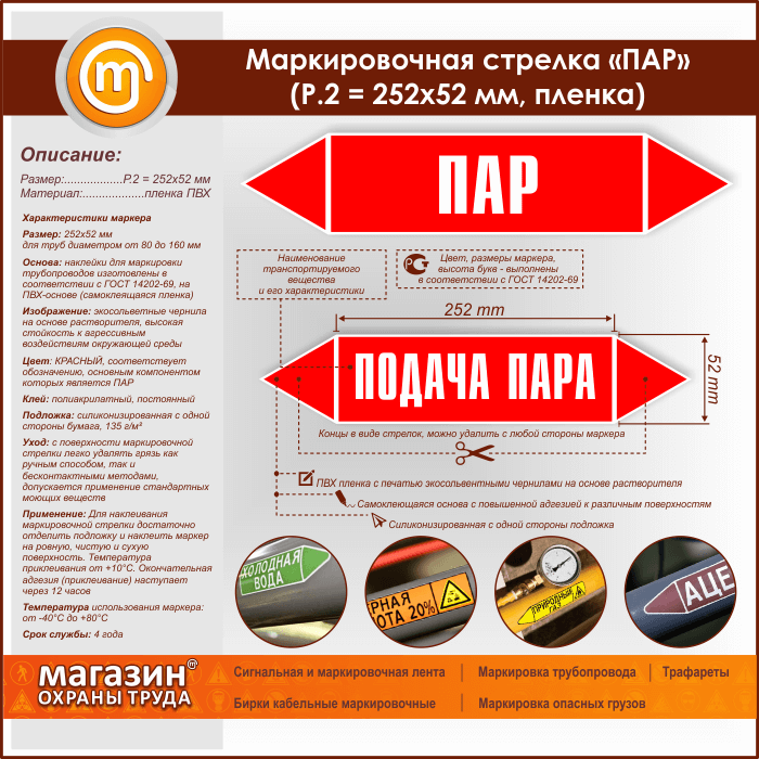 Маркировочная стрелка «ПАР» (P.2 = 252х52 мм, самоклеящаяся плёнка) в Кашире купить