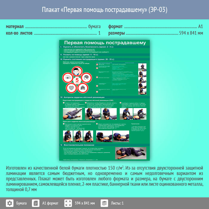Плакат «Первая помощь пострадавшему» (ЭР-03, бумага, А1, 1 лист) в Кашире купить