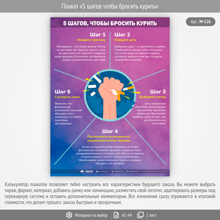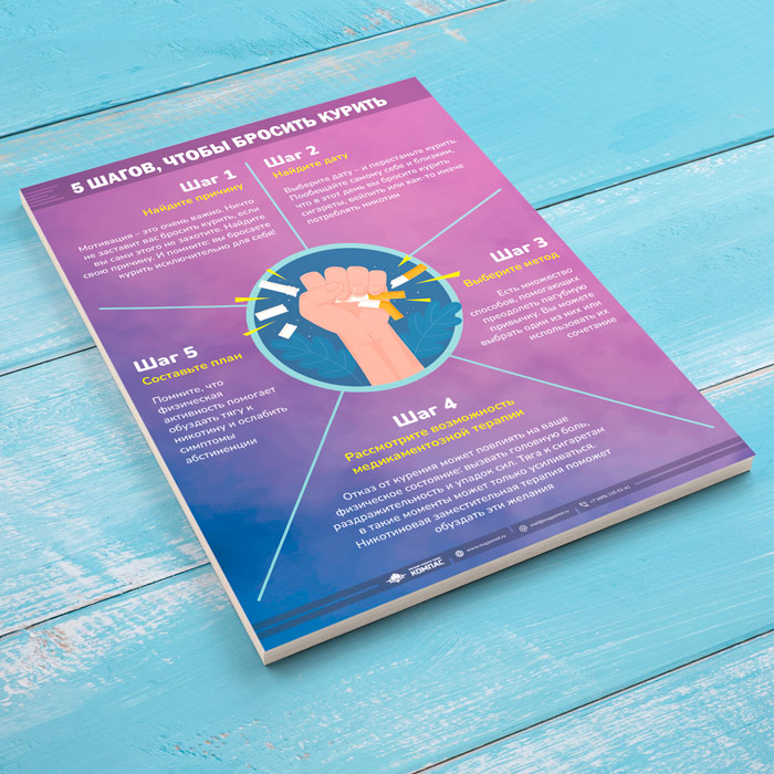 Плакат «5 шагов чтобы бросить курить» (М-126, 1 лист) в Кашире купить