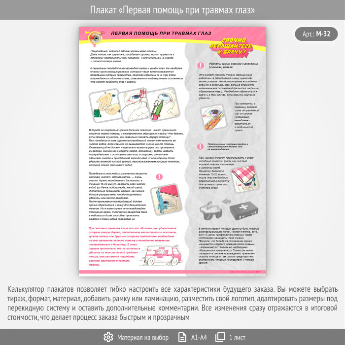 Плакат «Первая помощь при травмах глаз» (М-32, 1 лист) в Кашире купить
