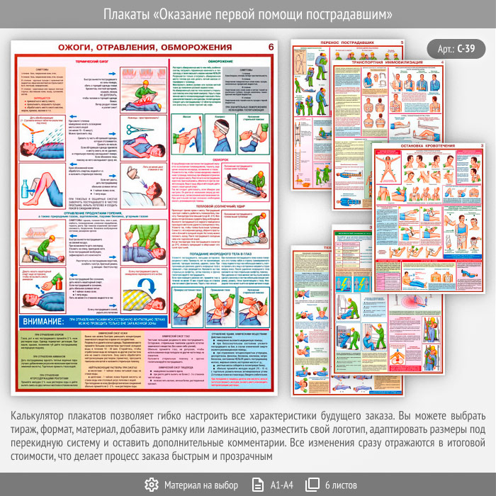 Плакат «Оказание первой помощи пострадавшим» (С-39, 6 листов) в Кашире купить