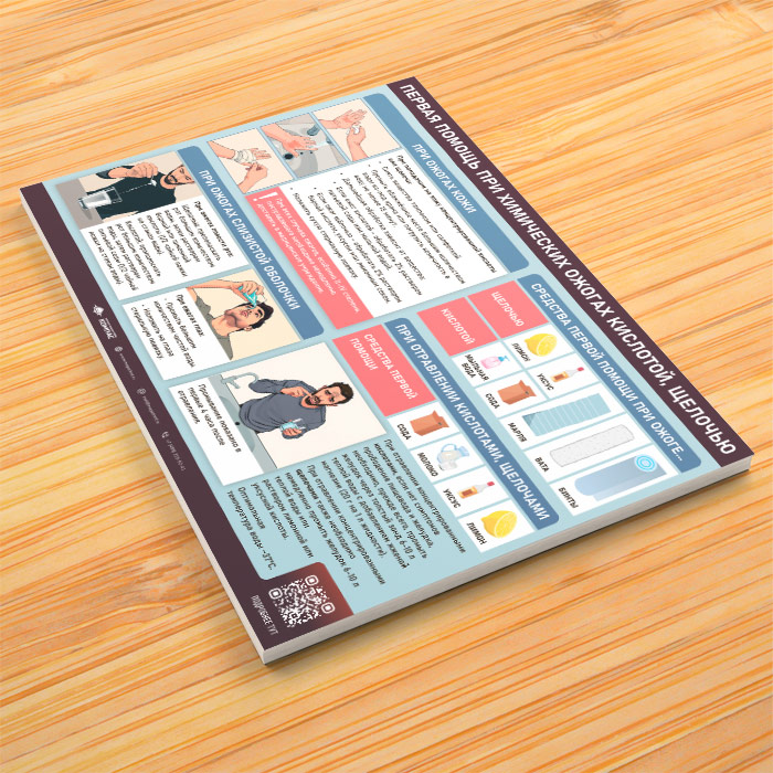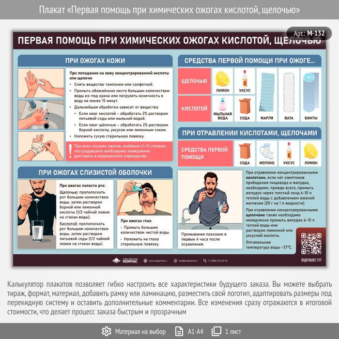 Плакат «Первая помощь при химических ожогах кислотой, щелочью» с QR (М-132, 1 лист) в Кашире купить