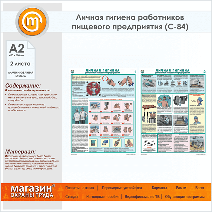 Плакаты «Личная гигиена работников пищевого предприятия» (С-84, ламинированная бумага, А2, 2 листа) в Кашире купить
