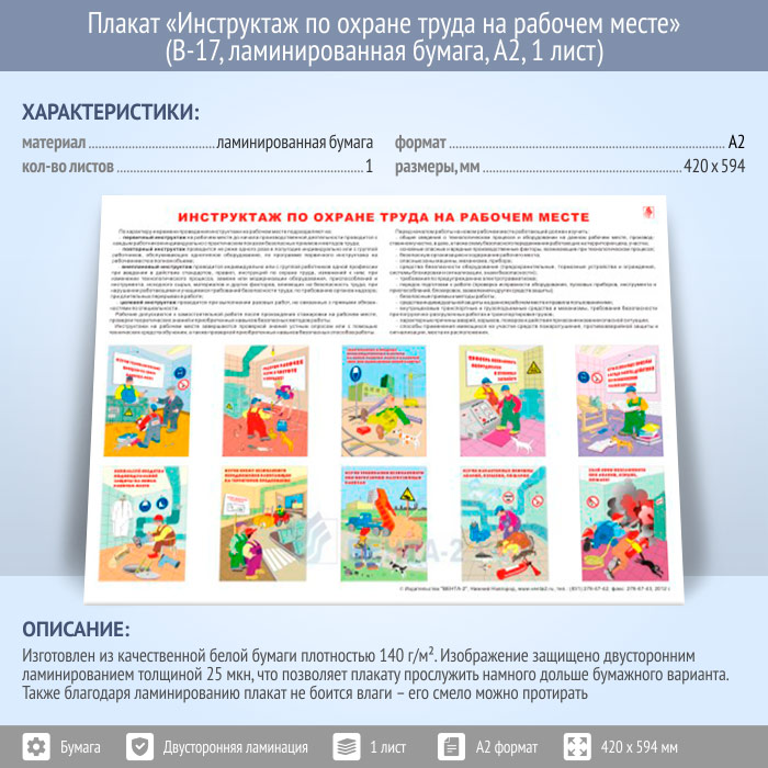 Плакат «Инструктаж по охране труда на рабочем месте» (В-17, ламинированная бумага, А2, 1 лист) в Кашире купить