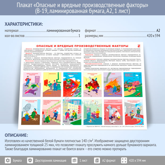 Плакат «Опасные и вредные производственные факторы» (В-19, ламинированная бумага, А2, 1 лист) в Кашире купить