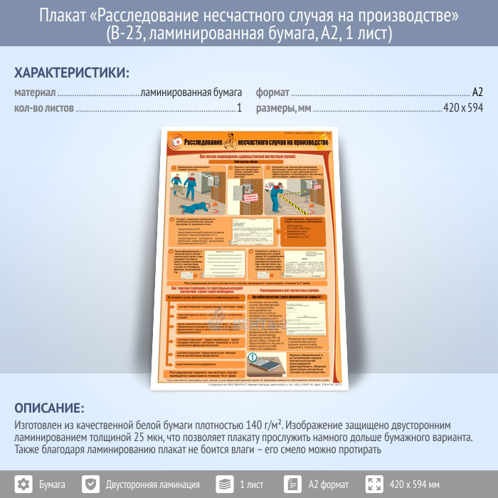 Плакат «Расследование несчастного случая на производстве» (В-23, ламинированная бумага, А2, 1 лист) в Кашире купить