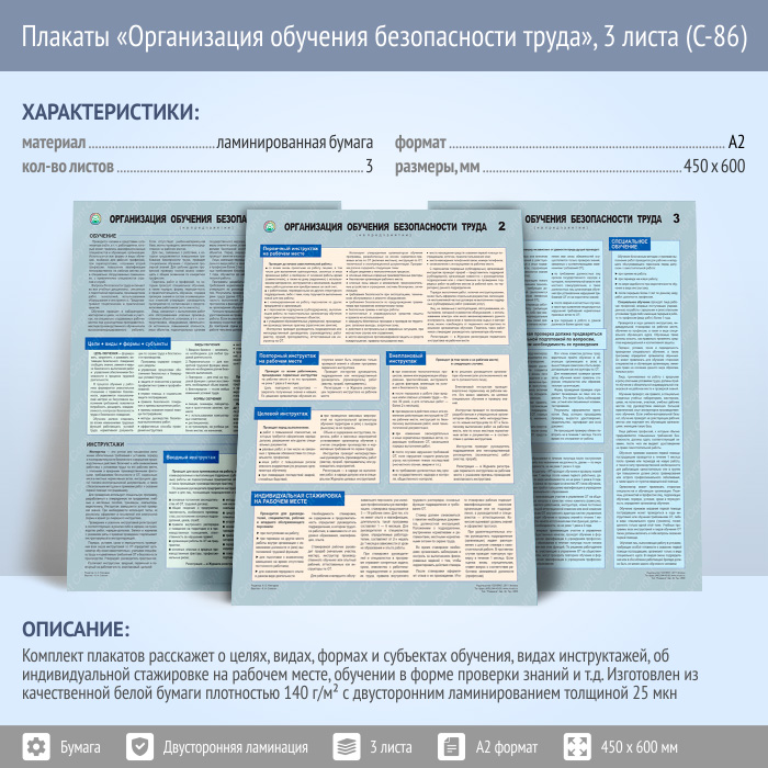 Плакаты «Организация обучения безопасности труда» (С-86, ламинированная бумага, А2, 3 листа) в Кашире купить