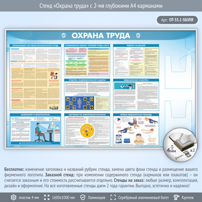 Стенд «Охрана труда» с 2-мя глубокими А4 карманами (OT-35.1-SILVER) в Кашире купить
