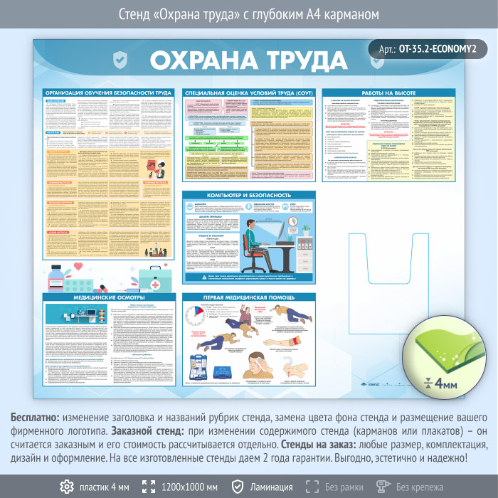 Стенд «Охрана труда» с глубоким А4 карманом (OT-35.2-ECONOMY2) в Кашире купить