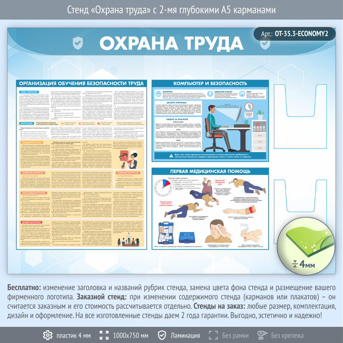 Стенд «Охрана труда» с 2-мя глубокими А5 карманами (OT-35.3-ECONOMY2) в Кашире купить