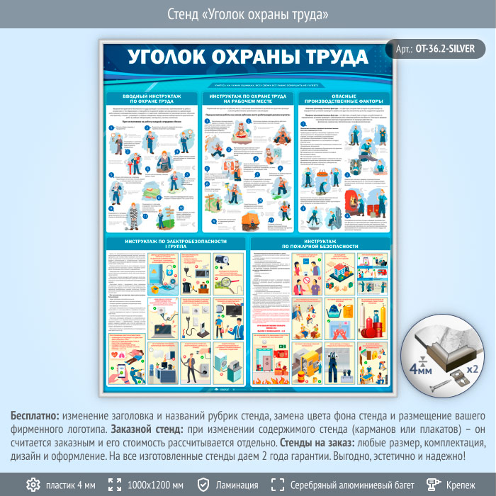 Стенд «Уголок охраны труда» (OT-36.2-SILVER) в Кашире купить