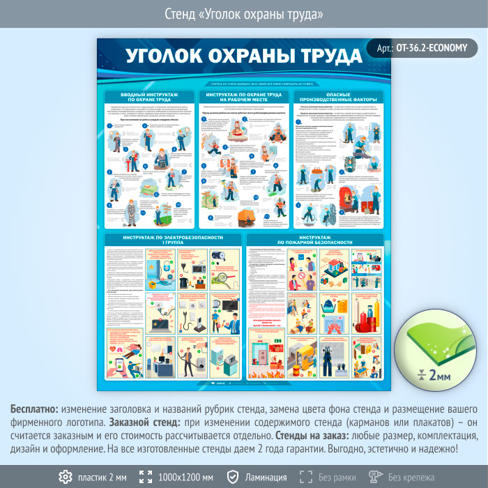 Стенд «Уголок охраны труда» (OT-36.2-ECONOMY) в Кашире купить