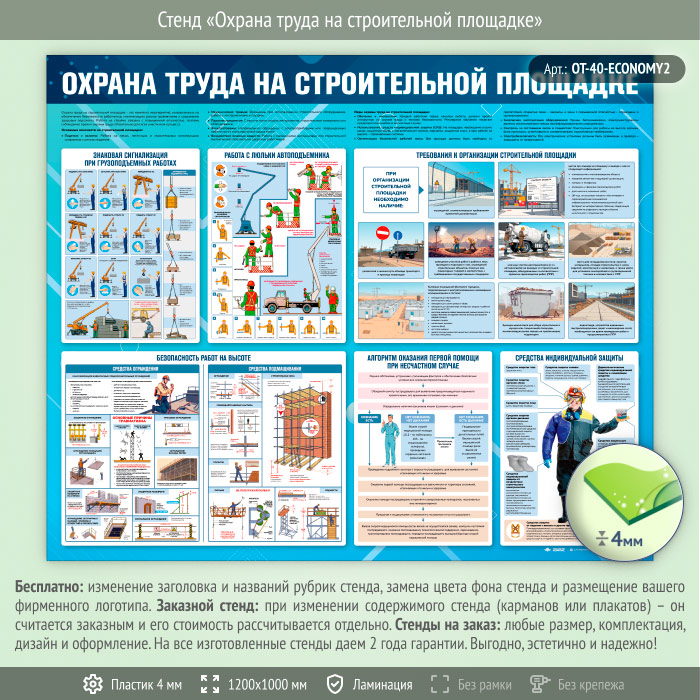 Стенд «Охрана труда на строительной площадке» (OT-40-ECONOMY2) в Кашире купить