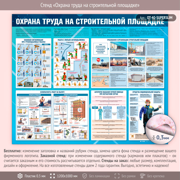 Стенд «Охрана труда на строительной площадке» (OT-40-SUPERSLIM) в Кашире купить