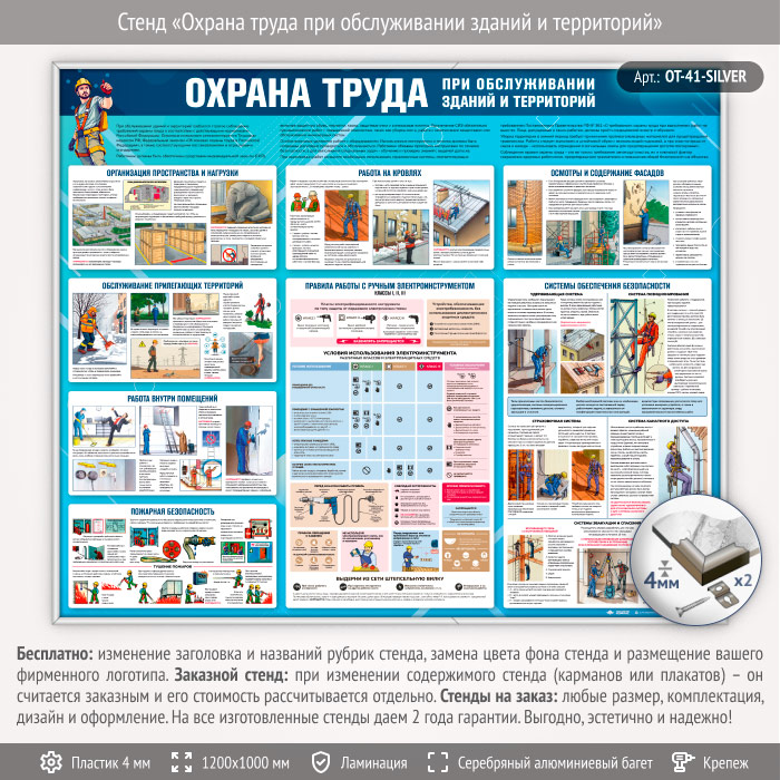 Стенд «Охрана труда при обслуживании зданий и территорий» (OT-41-SILVER) в Кашире купить
