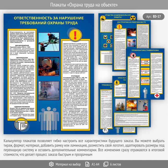 Плакаты «Охрана труда на объекте» (ВЗ-17, 6 листов) в Кашире купить