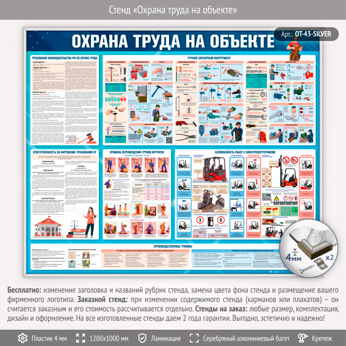 Стенд «Охрана труда на объекте» (OT-43-SILVER) в Кашире купить