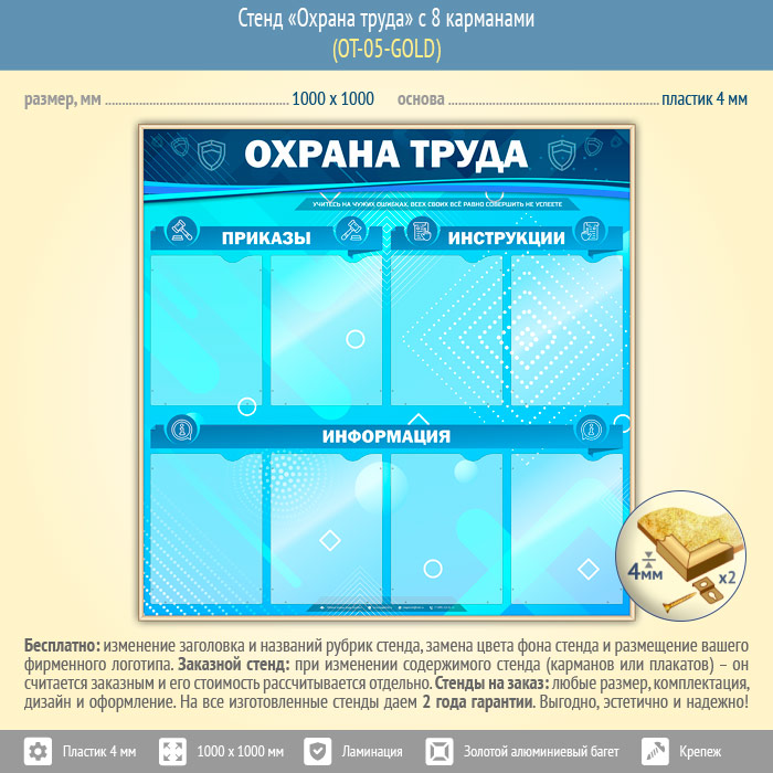Стенд «Охрана труда» с 8 карманами (OT-05-GOLD) в Кашире купить