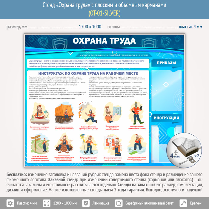 Стенд «Охрана труда» с плоским и объемным карманами (OT-01-SILVER) в Кашире купить