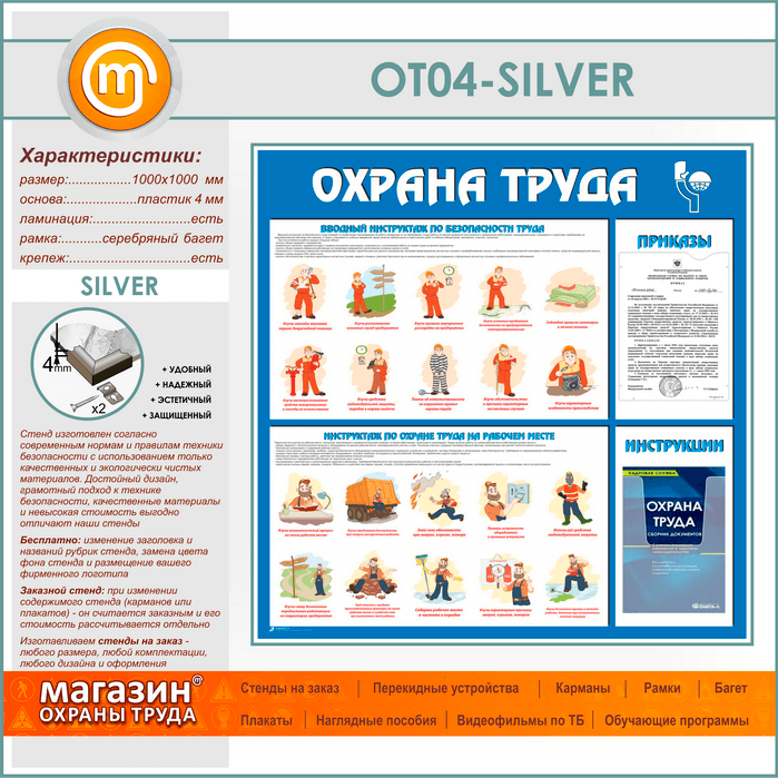 Стенд «Охрана труда» с плоским и объемным карманами (OT-04-SILVER) в Кашире купить