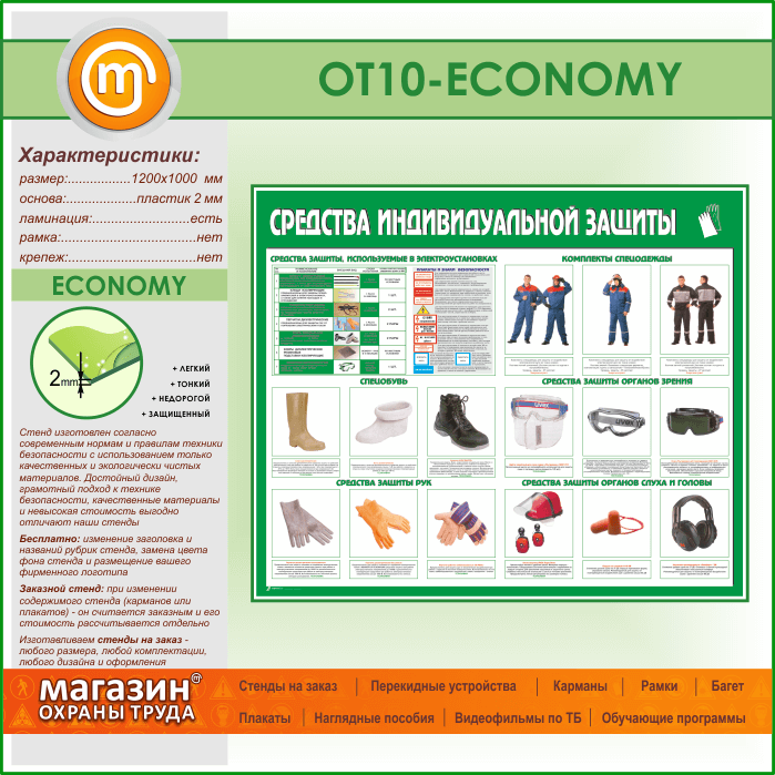 Стенд «Средства индивидуальной защиты» (OT-10-ECONOMY) в Кашире купить