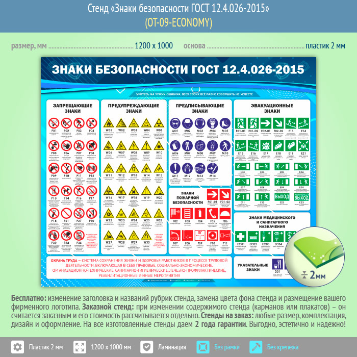 Стенд «Знаки безопасности ГОСТ 12.4.026-2015» (OT-09-ECONOMY) в Кашире купить