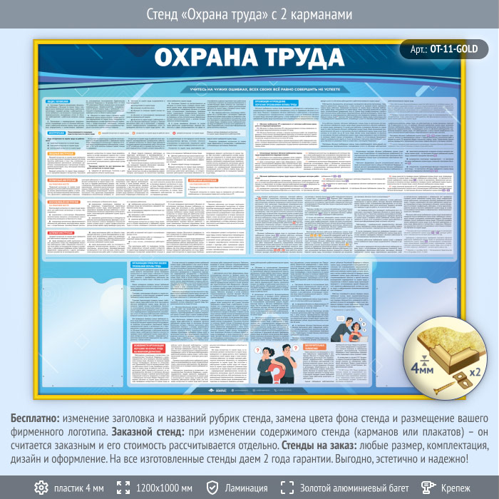 Стенд «Охрана труда» с 2 карманами (OT-11-GOLD) в Кашире купить