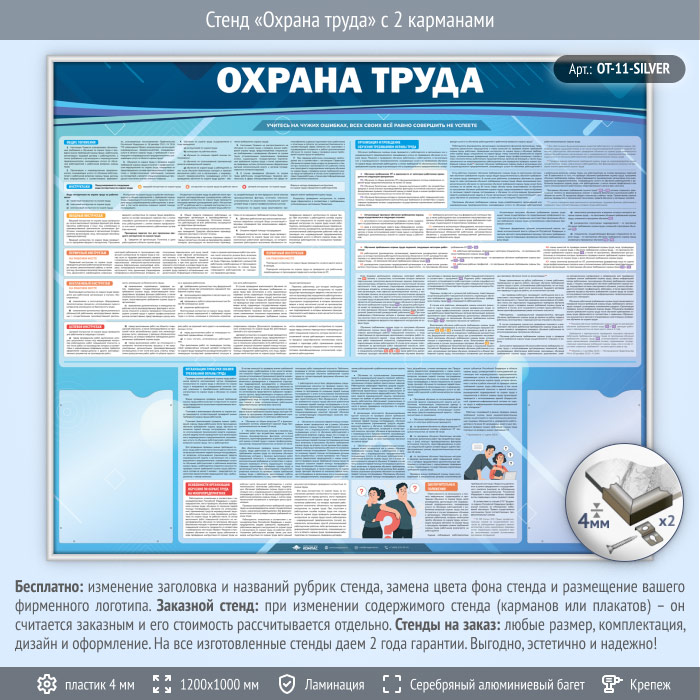 Стенд «Охрана труда» с 2 карманами (OT-11-SILVER) в Кашире купить