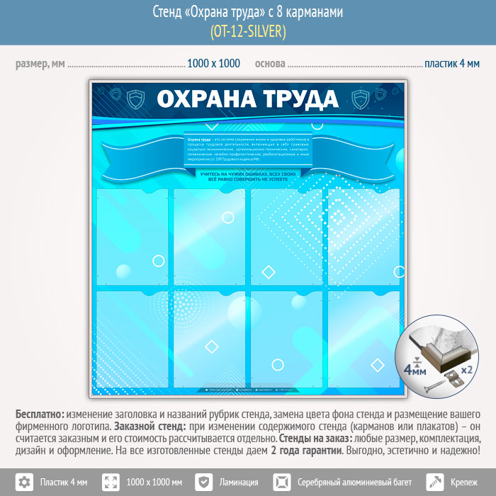Стенд «Охрана труда» с 8 карманами (OT-12-SILVER) в Кашире купить