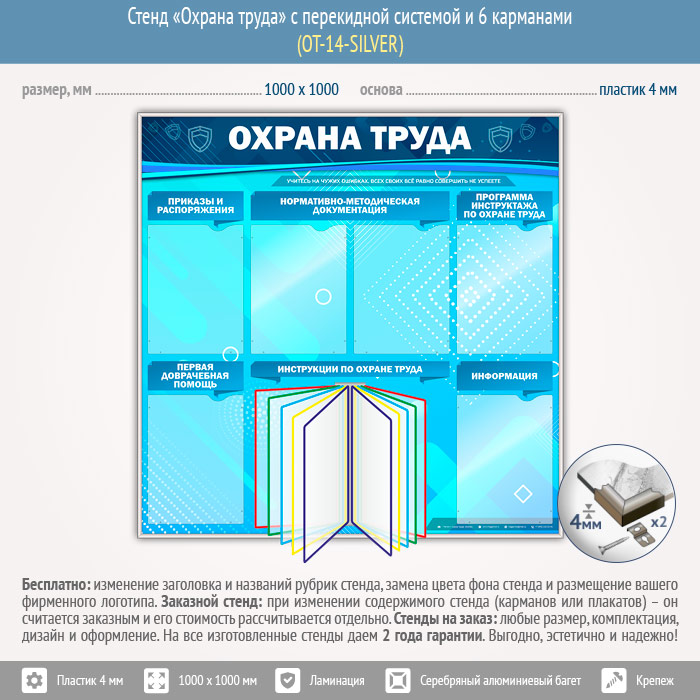 Стенд «Охрана труда» с перекидной системой и 6 карманами (OT-14-SILVER) в Кашире купить