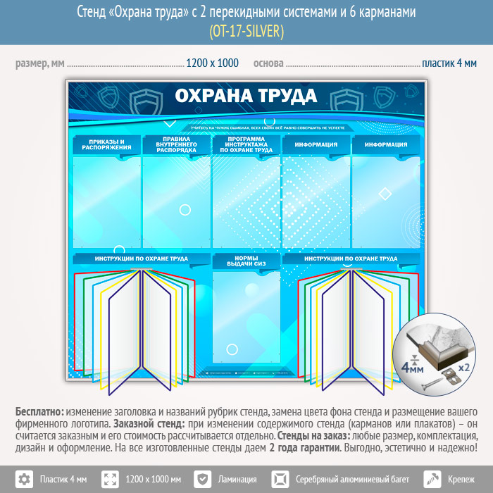 Стенд «Охрана труда» с 2 перекидными системами и 6 карманами (OT-17-SILVER) в Кашире купить