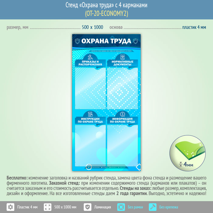 Стенд «Охрана труда» с 4 карманами (OT-20-ECONOMY2) в Кашире купить