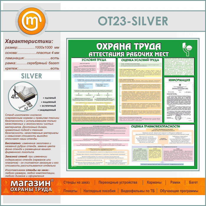 Стенд «Охрана труда. Аттестация рабочих мест» с карманом (OT-23-SILVER) в Кашире купить