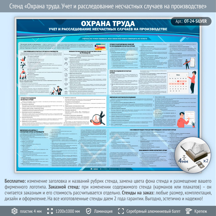 Стенд «Охрана труда. Учет и расследование несчастных случаев на производстве» (OT-24-SILVER) в Кашире купить