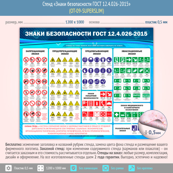 Стенд «Знаки безопасности ГОСТ 12.4.026-2015» (OT-09-SUPERSLIM) в Кашире купить