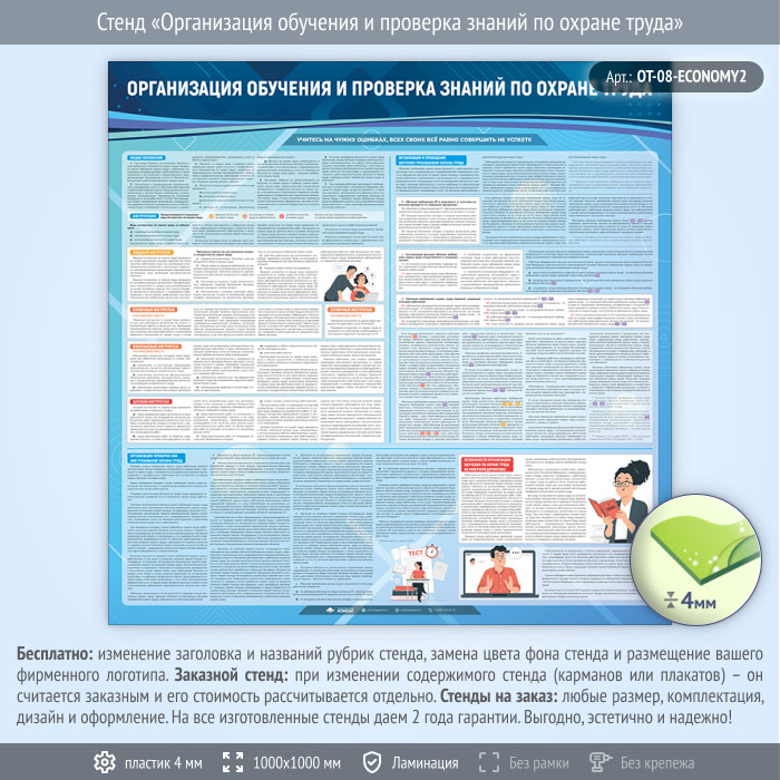 Стенд «Организация обучения и проверка знаний по охране труда» (OT-08-ECONOMY2) в Кашире купить