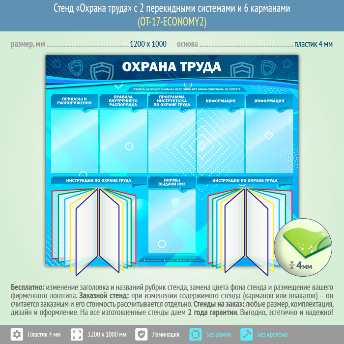 Стенд «Охрана труда» с 2 перекидными системами и 6 карманами (OT-17-ECONOMY2) в Кашире купить