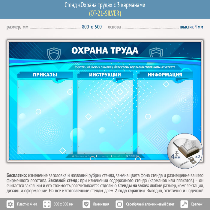 Стенд «Охрана труда» с 3 карманами (OT-21-SILVER) в Кашире купить