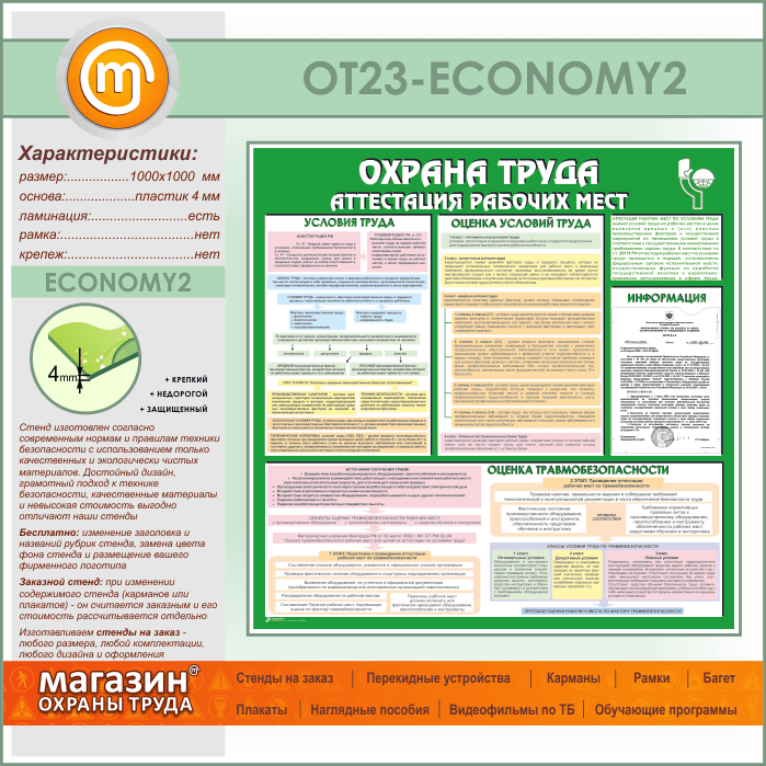 Стенд «Охрана труда. Аттестация рабочих мест» с карманом (OT-23-ECONOMY2) в Кашире купить