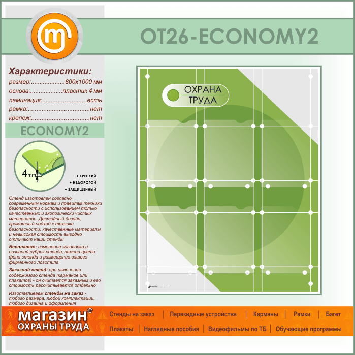 Стенд «Охрана труда» с 6 плоскими карманами (OT-26-ECONOMY2) в Кашире купить