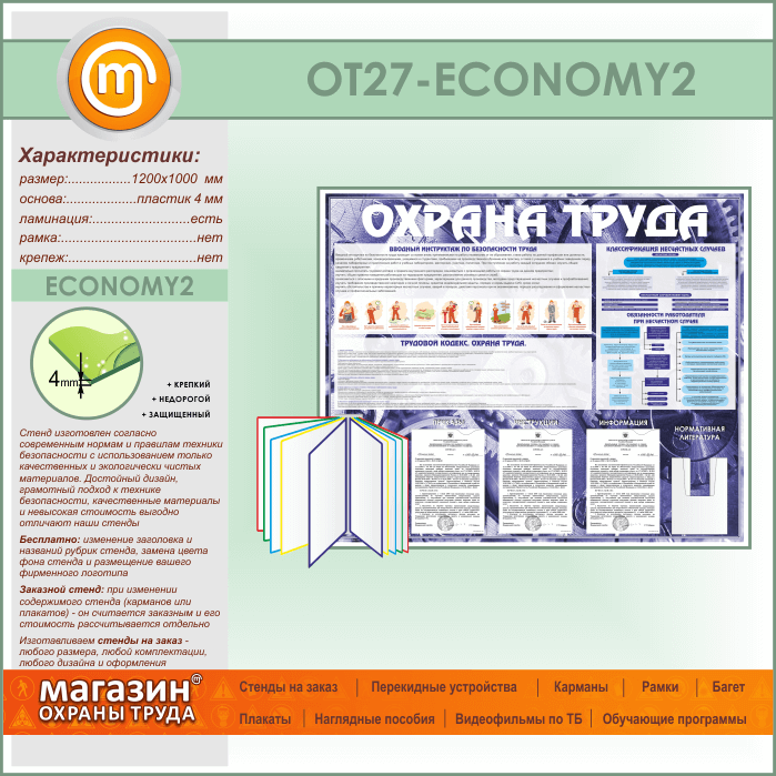 Стенд «Охрана труда» с перекидной системой, 3 плоскими и 1 объемным карманом (OT-27-ECONOMY2) в Кашире купить