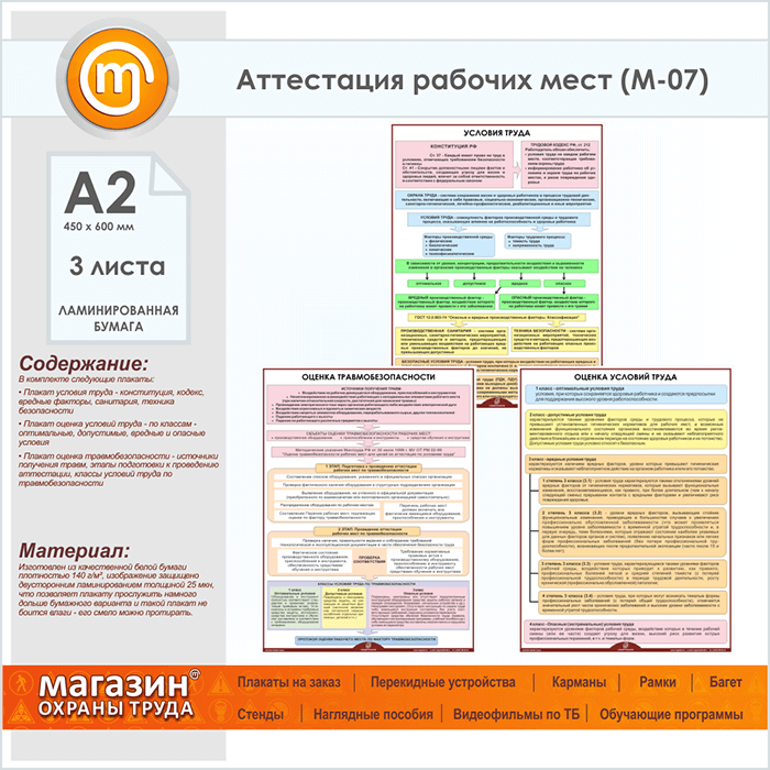 Плакаты «Аттестация рабочих мест» (М-07, ламинированная бумага, А2, 3 листа) в Кашире купить