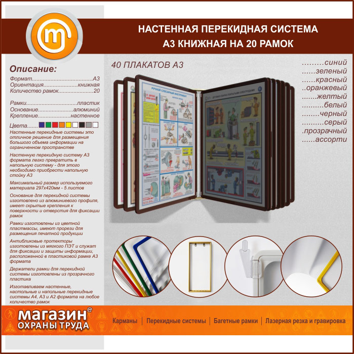 Настенная перекидная система А3 на 20 рамок книжная в Кашире купить