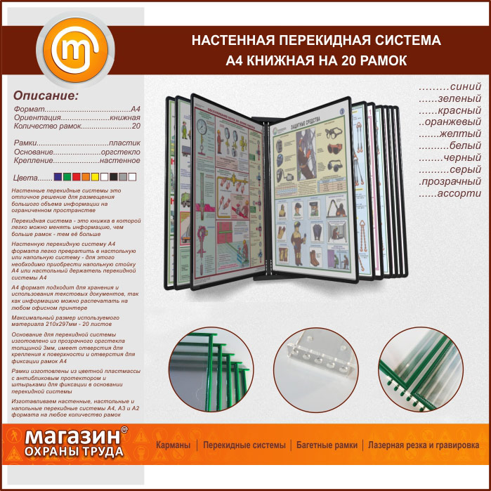 Настенная перекидная система А4 на 20 рамок книжная в Кашире купить