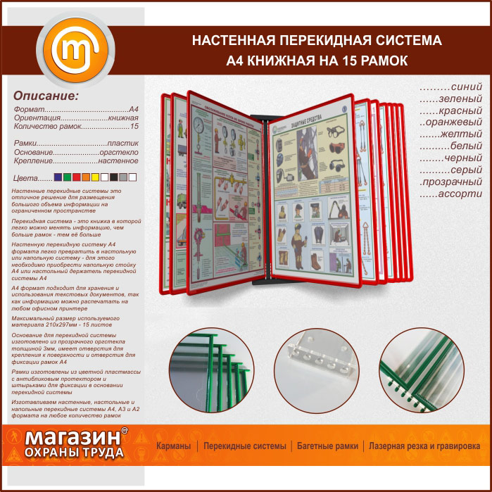 Настенная перекидная система А4 на 15 рамок книжная в Кашире купить