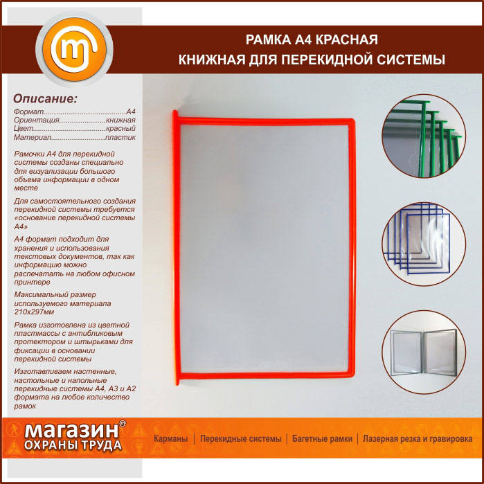 Рамка А4 красная книжная в Кашире купить