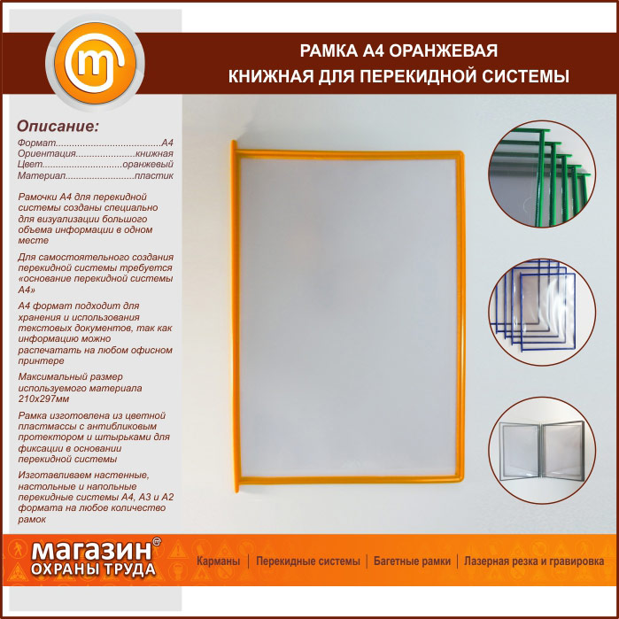 Рамка А4 оранжевая книжная в Кашире купить